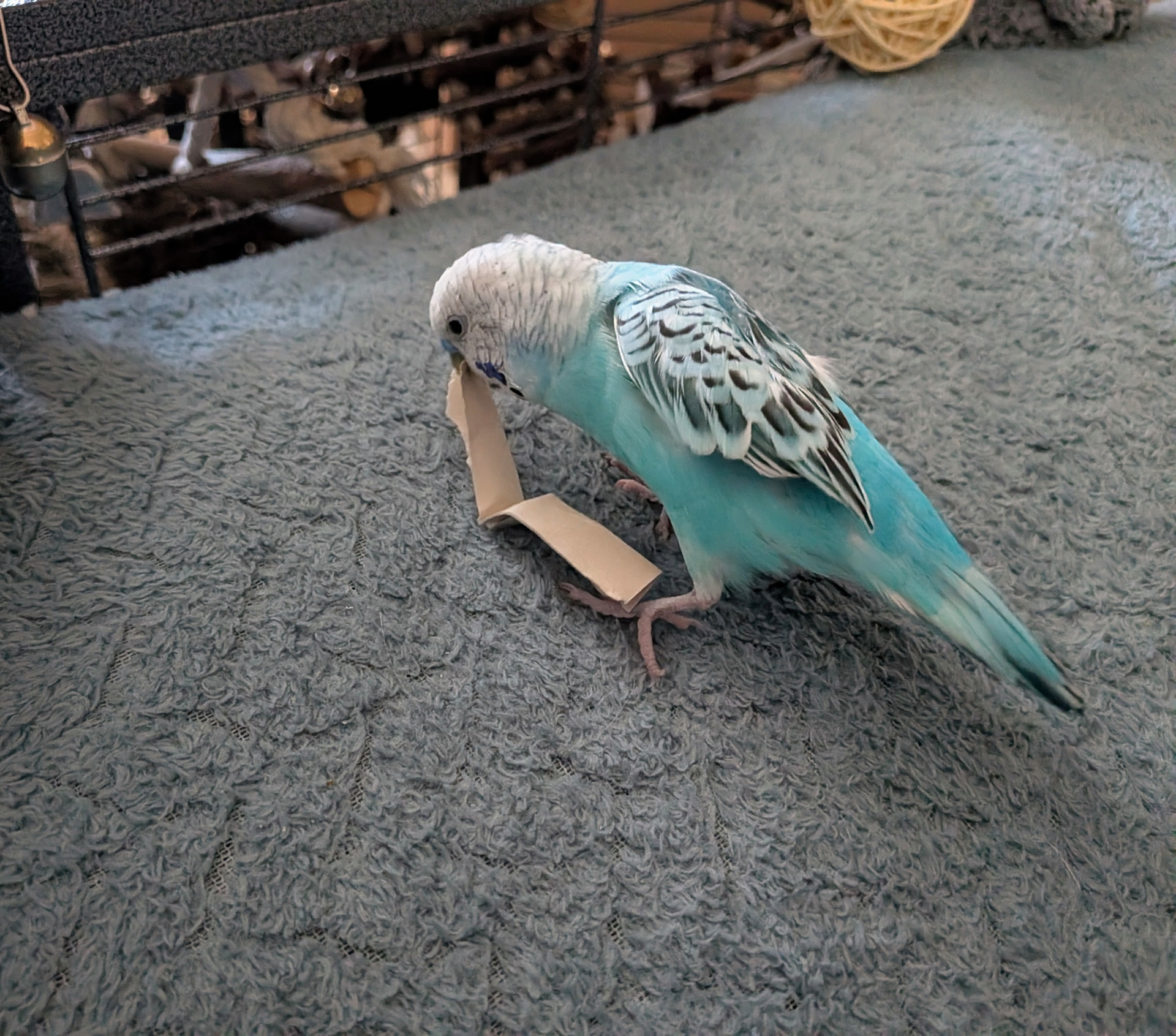 Late morning here. Peppy was a good bird yesterday so he got a reward of his favorite toy this morning. A piece of cardboard. ![]()