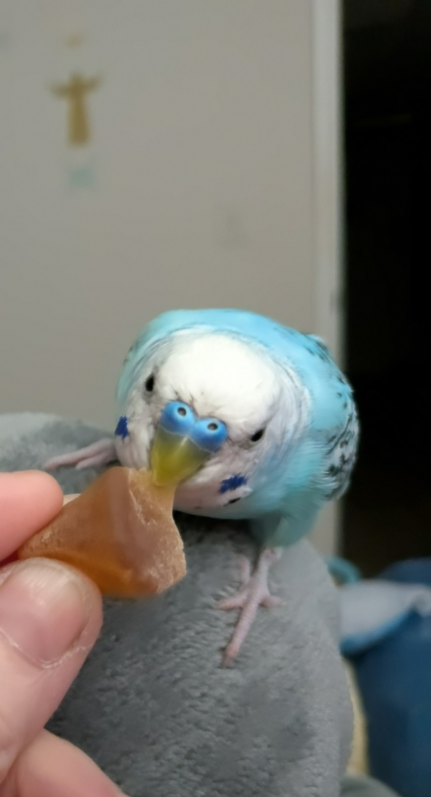 Still morning here. Peppy got a beak trim and some kiwi as a reward. Don’t forget to brush your teeth this week ![]()